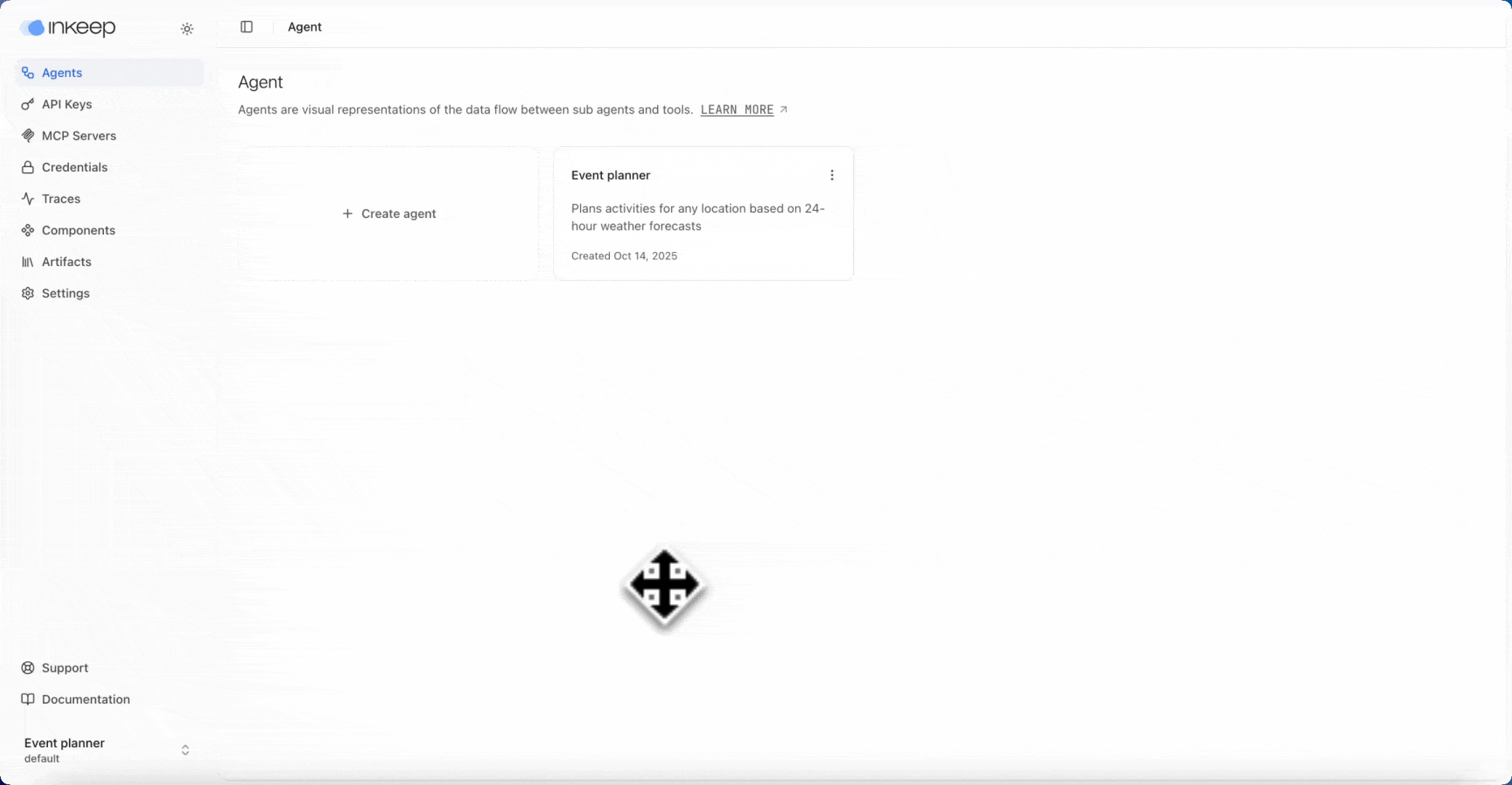 With Inkeep, you can define your agents in code, push them to the Visual Builder, and continue developing with the intuitive drag-and-drop interface. You can switch back to code any time.
